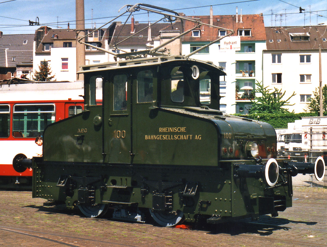 Straßenbahnlok Nummer 100 im Betriebshof Am Steinberg.