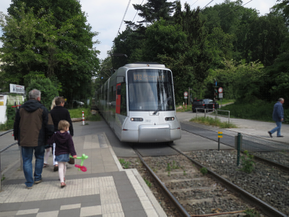 Distanz durch die Ausläufer des Aaper Waldes, auf eigenem Bahnkörper zwar teilweise entlang einer Autostraße, aber