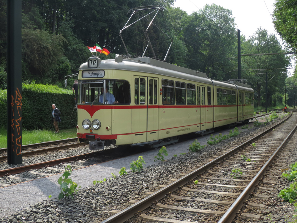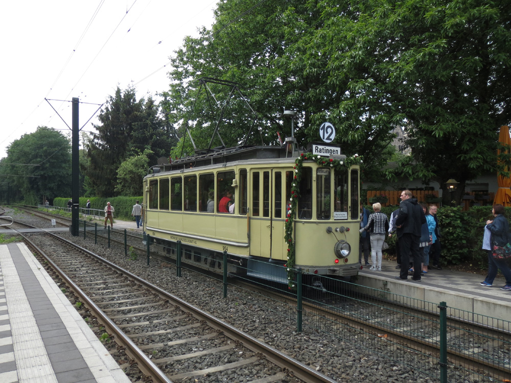 Auch der Holzaufbauwagen 954 pendelt zwischen Oberrath und Ratingen.