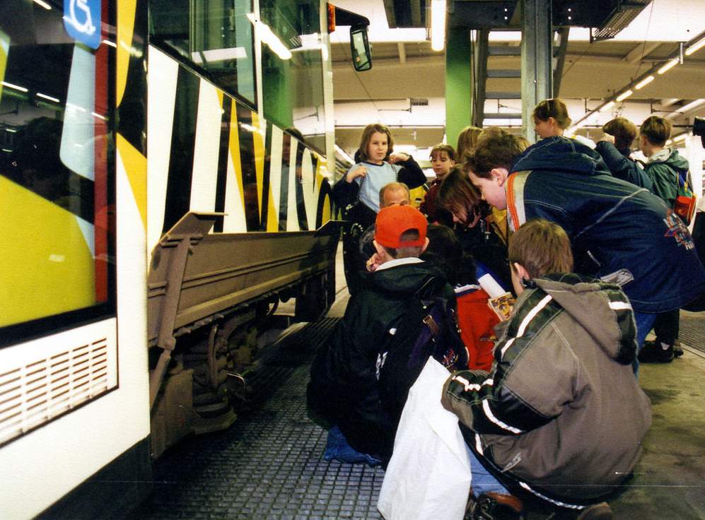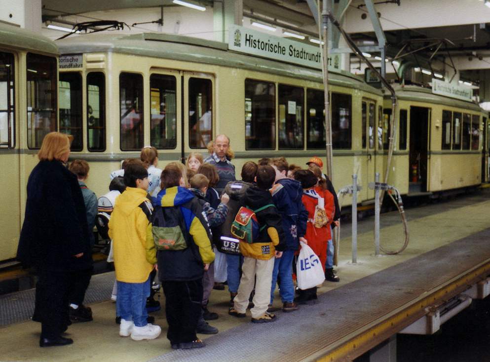 Nun geht's mit Dietmar Pfeiffer durch die Straßenbahnhallen. Die Kinder wundern sich: